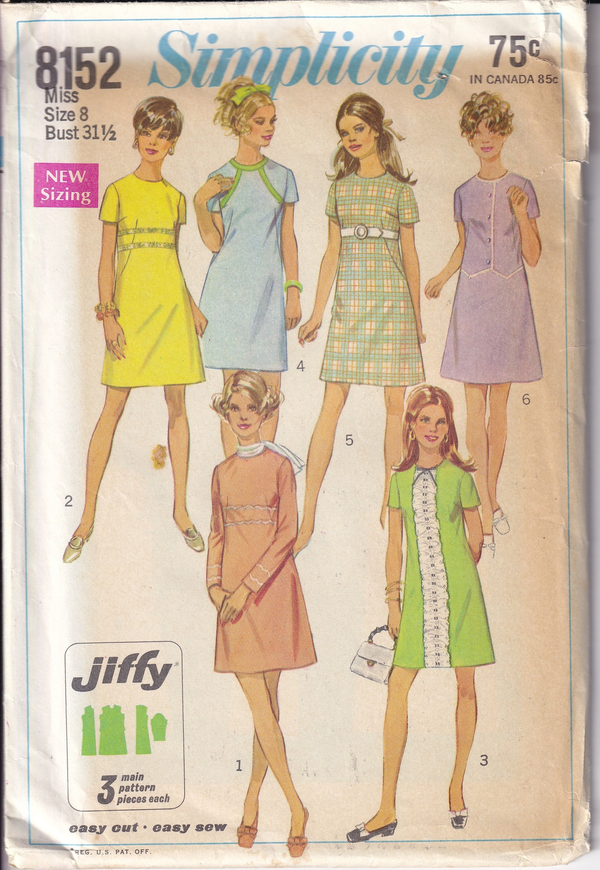 1969 Simplicity 8152 Mod Dress Pattern Size 12 Bust 34 Complete Bixley Shop